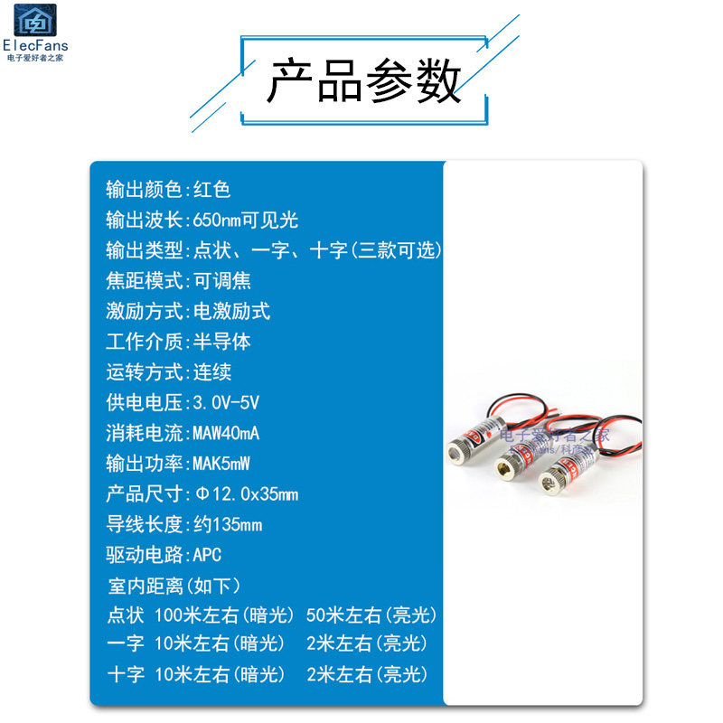 3V-5V 3V-5V laser head 5mW punctual red light lined infrared positioning cross laser head diode outer diameter 12mm-Taobao