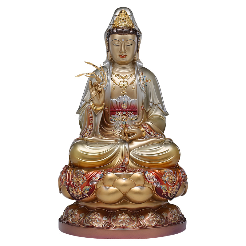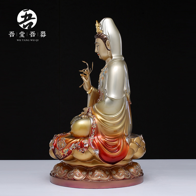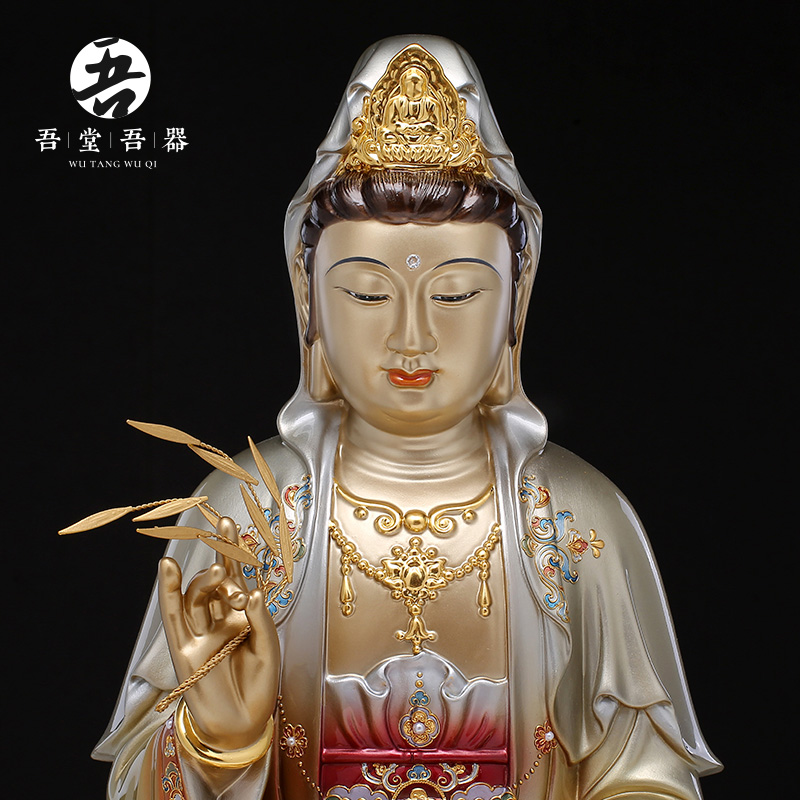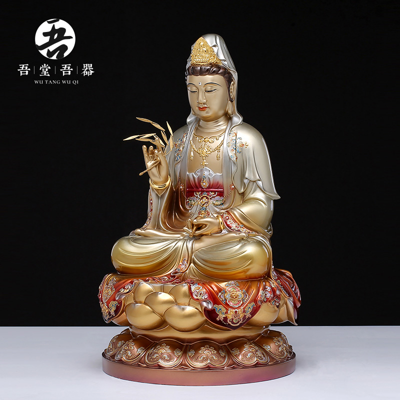 All copper four scarves "Guanyin Bodhisattva" cloisonné enamel inlaid gold Buddha statue ornaments for household dedication copper home crafts gifts ornaments