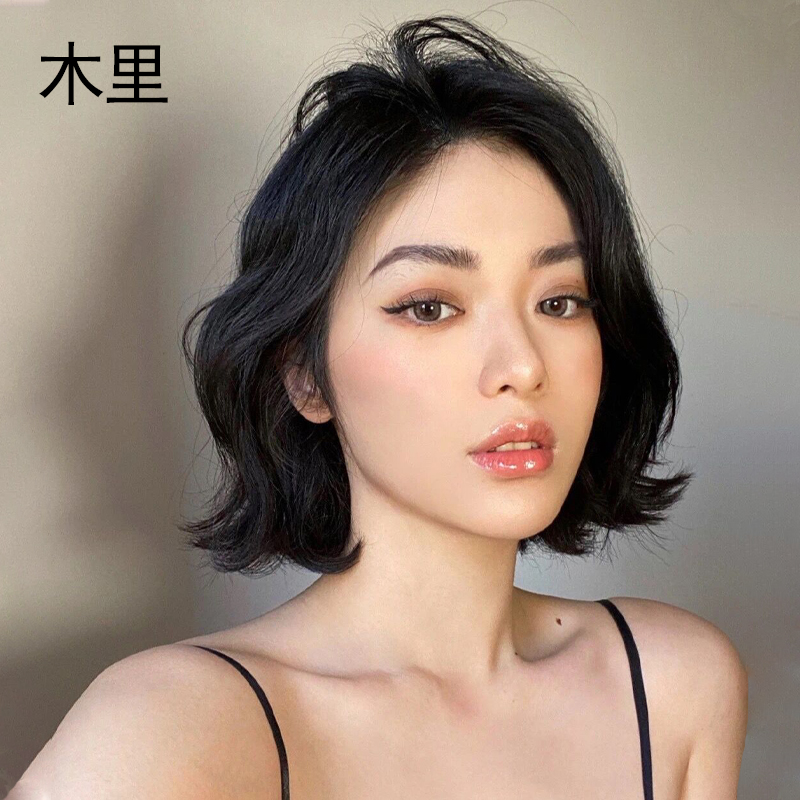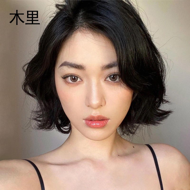 Wig woman short hashPopo head 8 words short curly hair micro-roll real hair light and breathable full live-action hair headgear