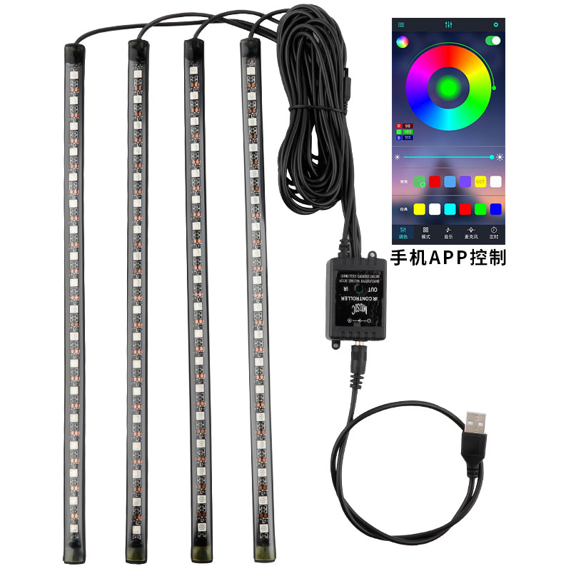 Upgrade section one drag four (full ground star seven color remote control acoustic control suction mode) USB section 48 Lights voice-controlled atmosphere light Seven color Suction Remote Control One Tug Usb Interface 48 Lights