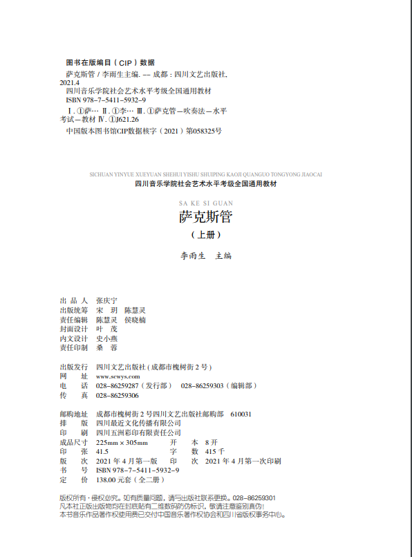 Sichuan Conservatory Society Art Level Saxophone Appraisal Exam National Teaching Materials Saxophone Chuanyin