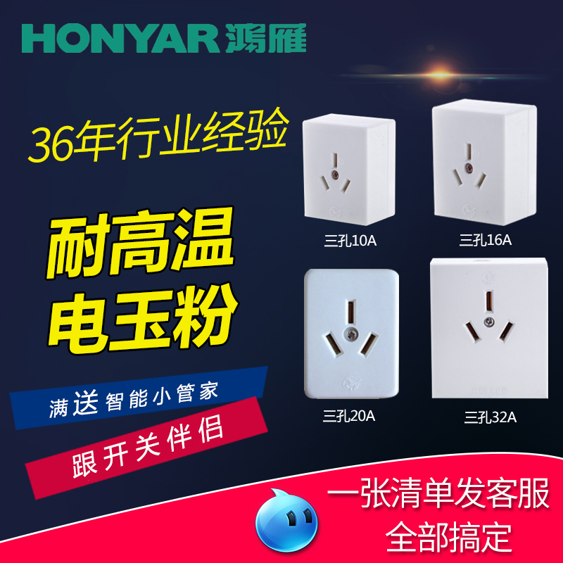 Hongyan Ming plug socket household power socket air conditioning socket 10A16A32A2 feet 3 feet flame retardant