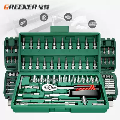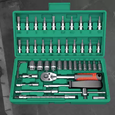 Green Forest 46-piece set hexagon socket tool combination 1 4-inch socket wrench quick ratchet wrench set household tool box