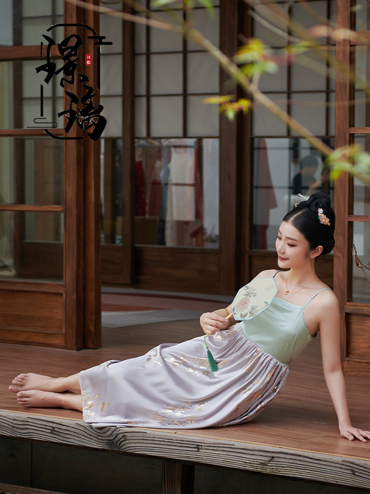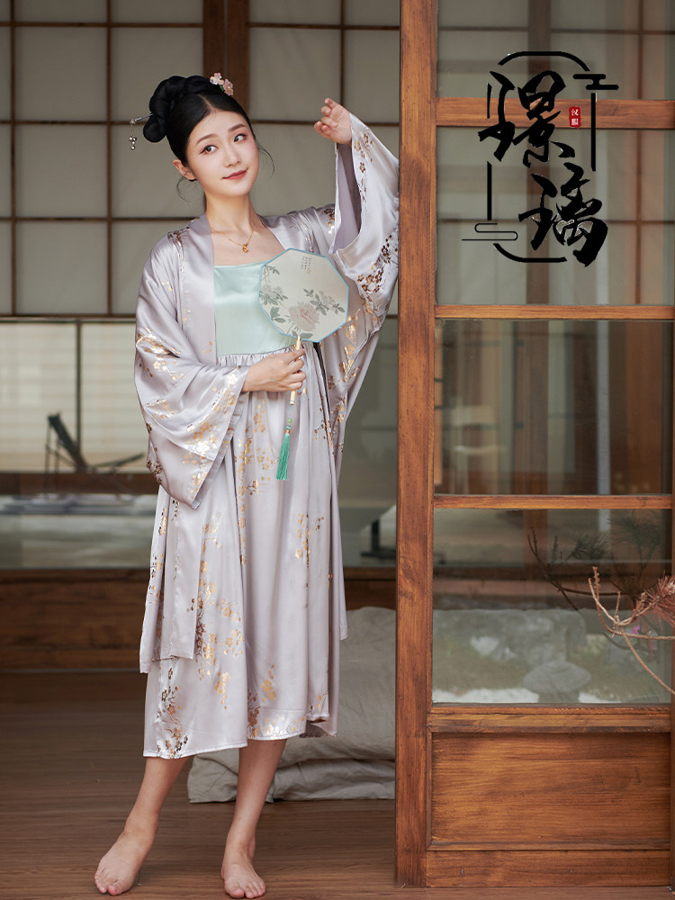 Glazed Original Improved Song-making State Wind Han clothes Sleeping Dress Gufeng Emulation Silk Pyjamas home Suits Suit Spring Summer Girls