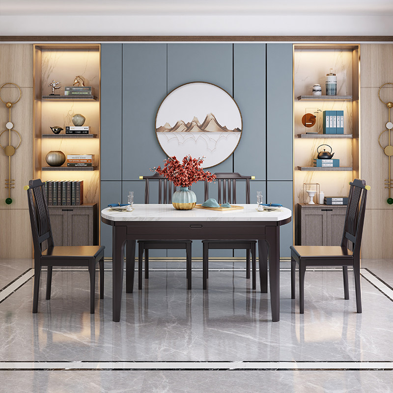 New Chinese marble dining table and chair combination square and round dual-purpose dining table modern minimalist small apartment set furniture