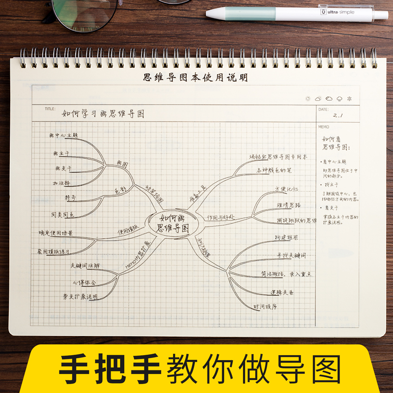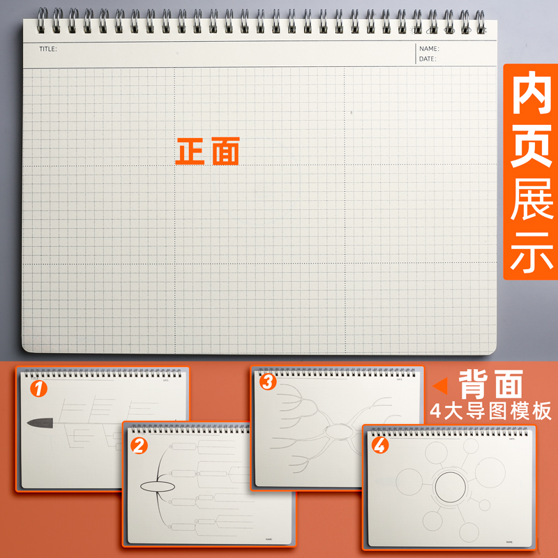 Mind map notebook A4 large Cornell 5R memory method square box kraft paper painting four-dimensional guide paper horizontal flip template this postgraduate entrance examination college students primary school students b5 blank