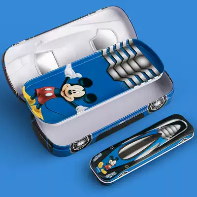 Tinplate stationery box primary school student pen box boys cartoon large capacity double-layer pencil box multi-function Mickey Minnie