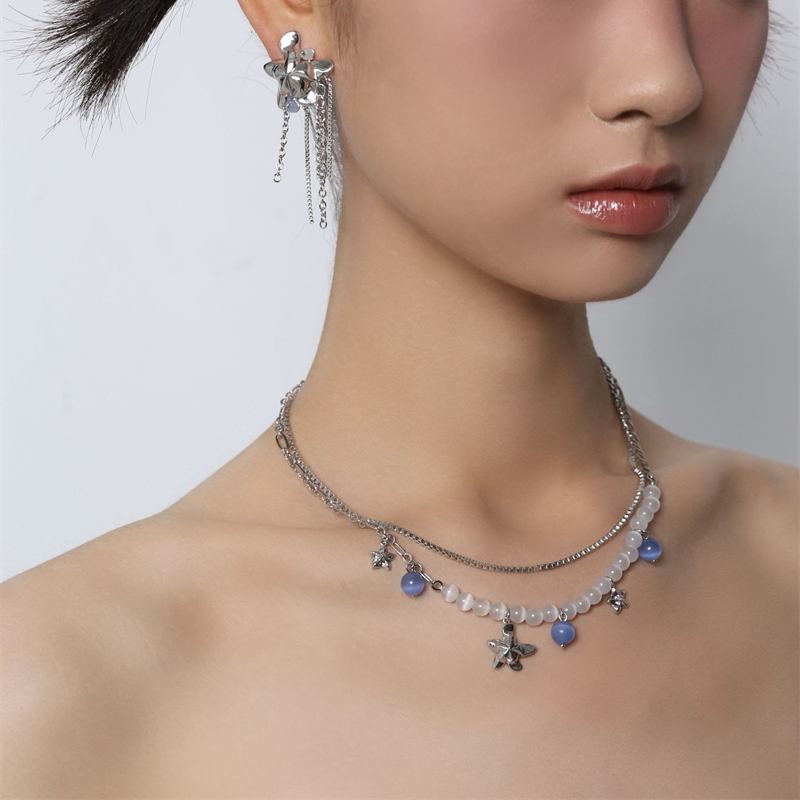 OOPS JEWELRY summer tea series Blue Cat's Eye Stone star double stack wearing necklace female neck