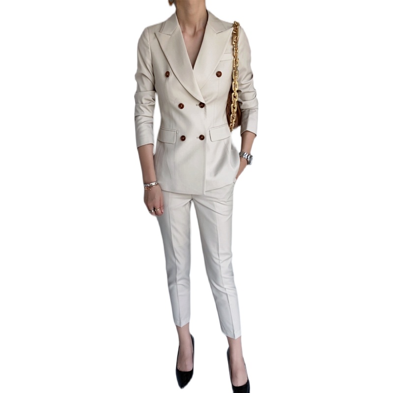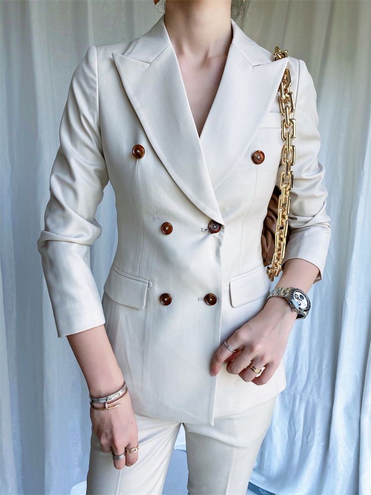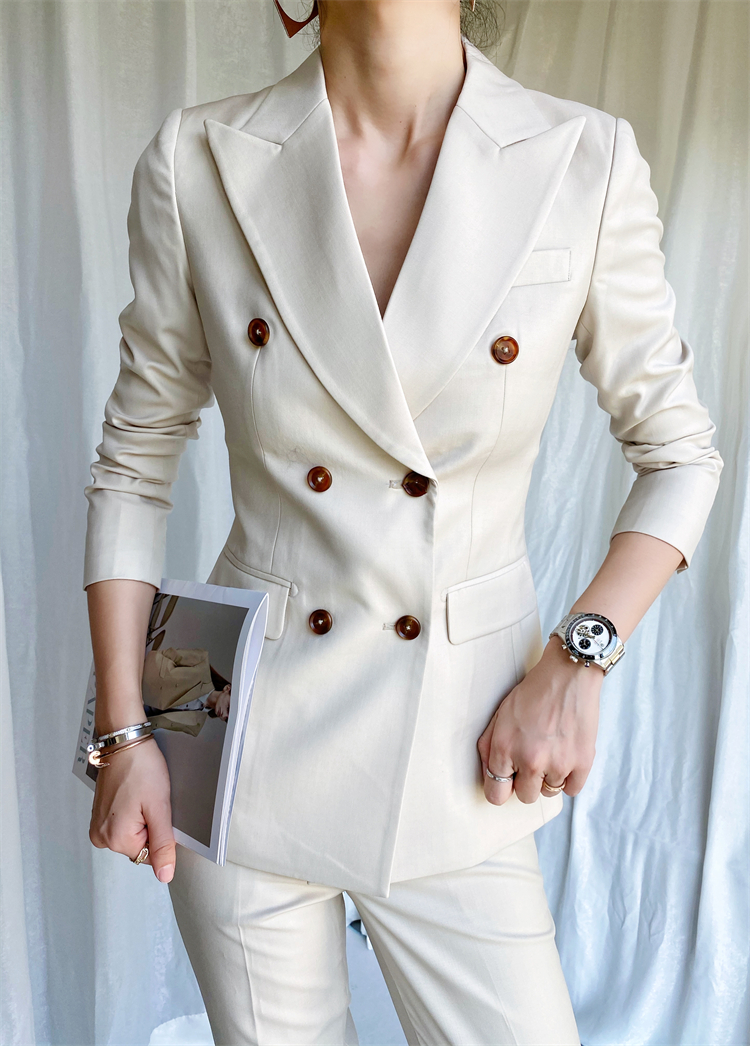 Double-breasted suit women's oatmeal color high-end work clothes wool slim fit big-name custom temperament two-piece suit