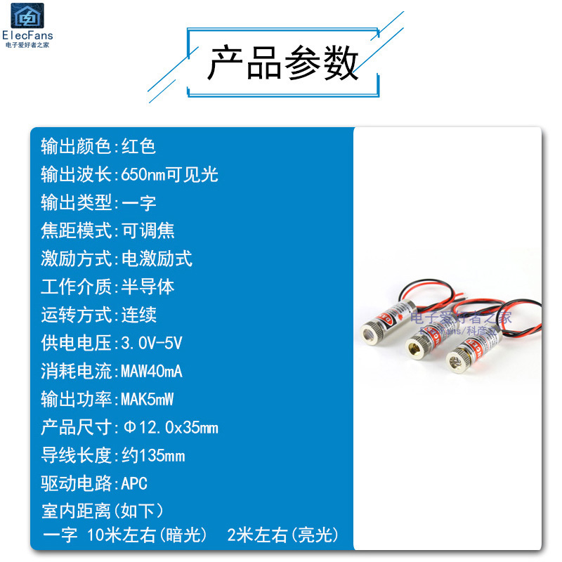 3V-5V Laser head 5mW red photoelectric infrared positioning laser head 1 diode outer diameter 12mm