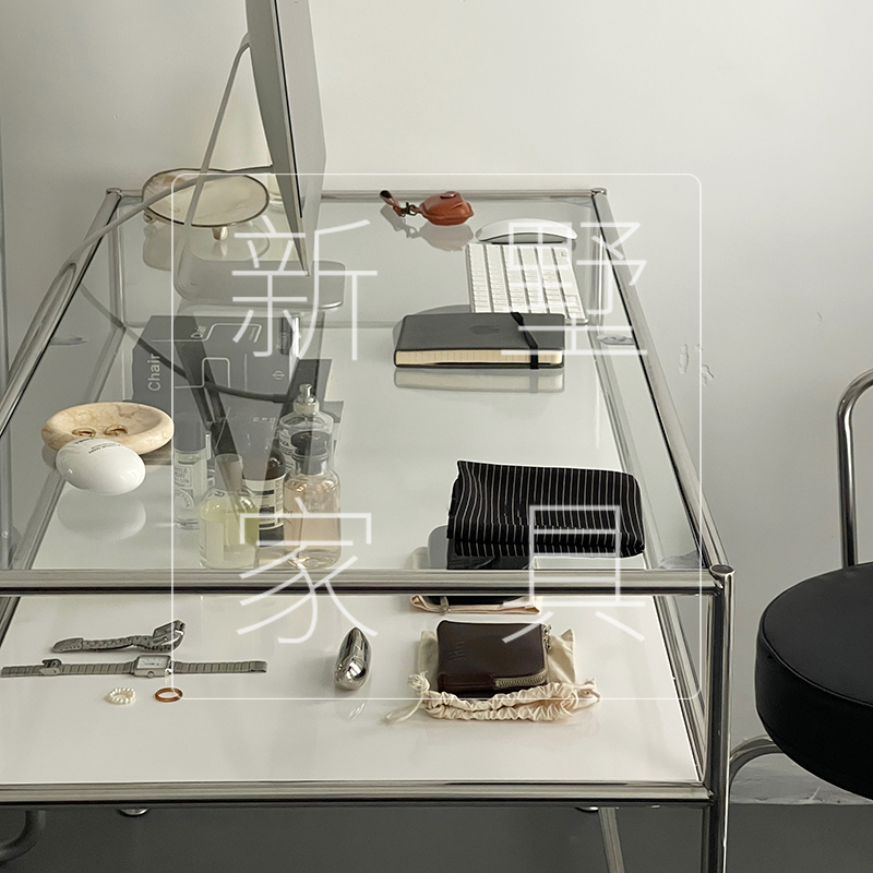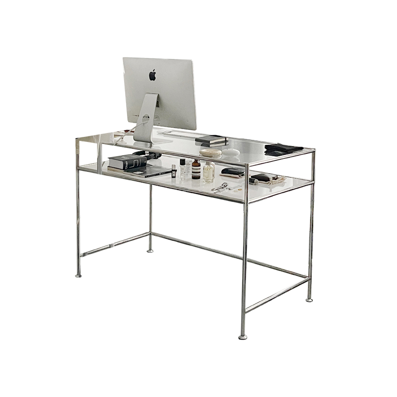 Nordic Minimalist Desk Computer Desk Home Small Household Type Bedroom Metal Table Transparent Desk Pole Minimalist Glass Table