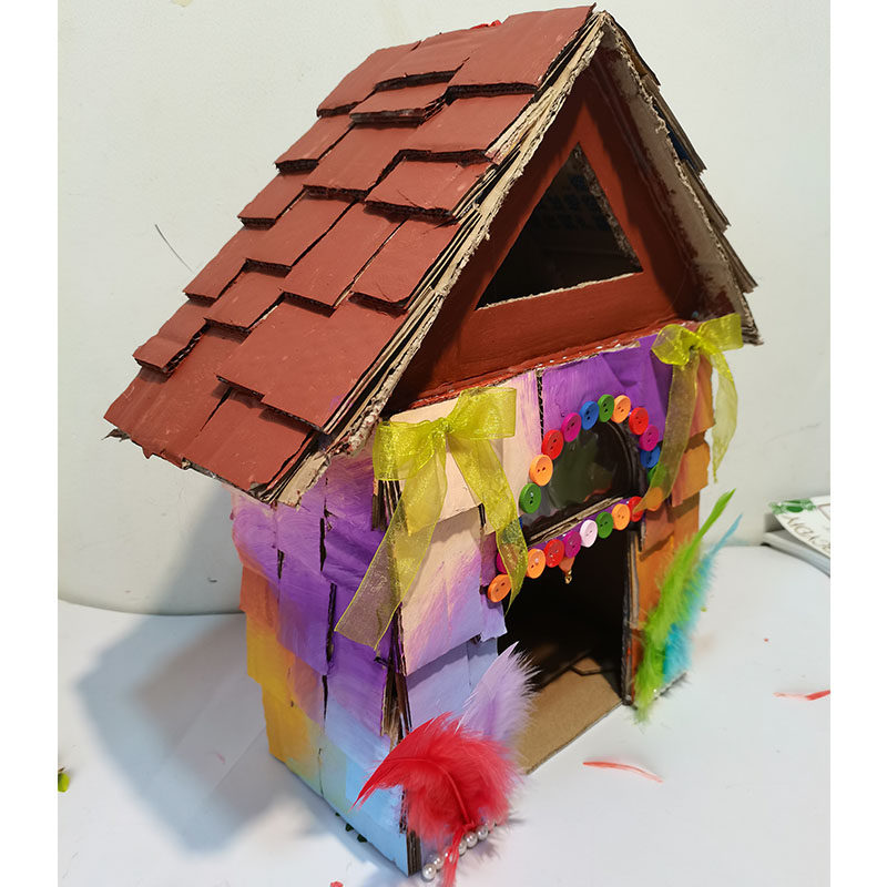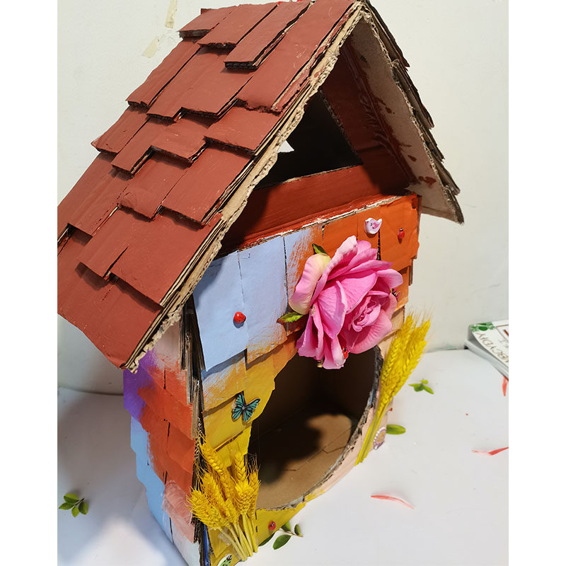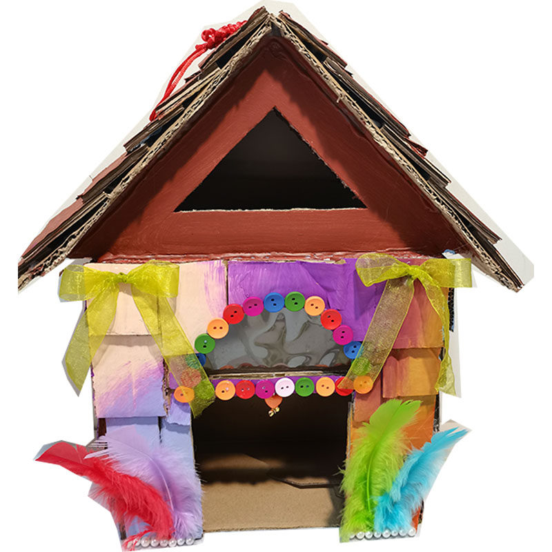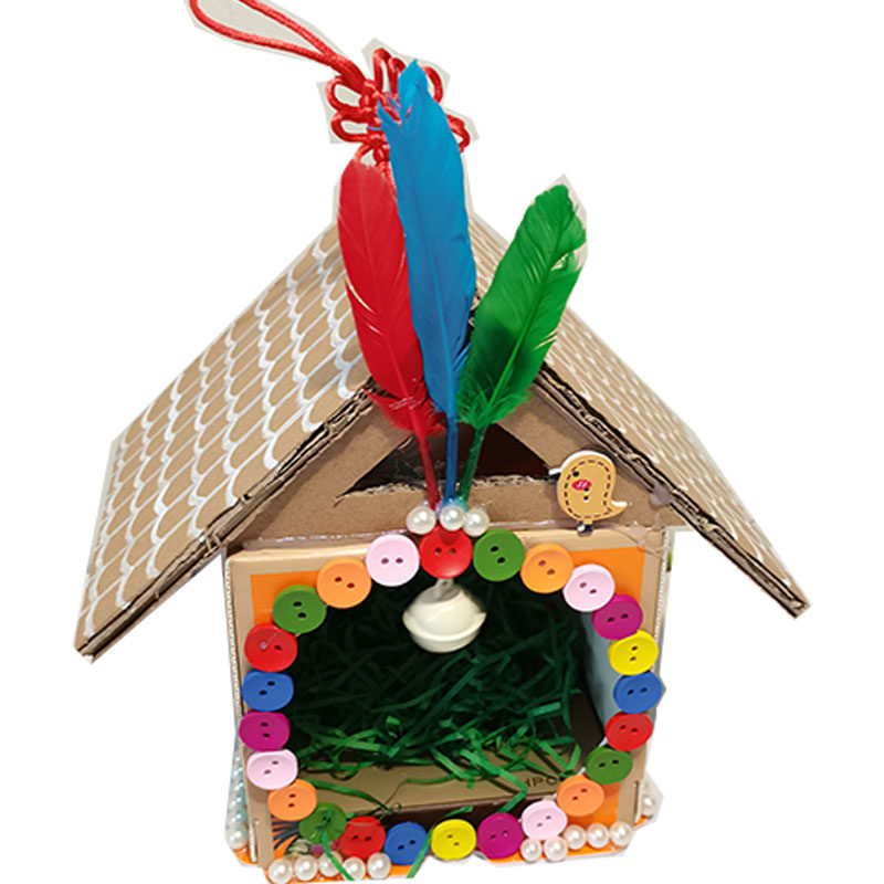 Waste utilization, turning waste into treasure, handmade milk box into bird's nest, cardboard box, birdcage, lantern, biscuit box, finished product