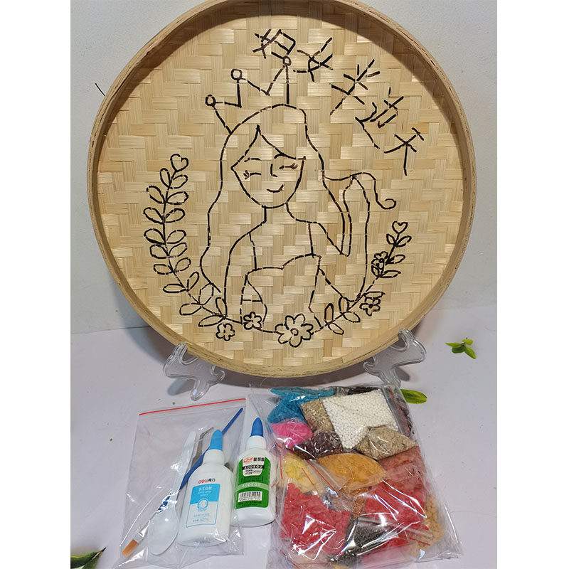 Grain paste painting handmade DIY seed painting rice painting grain painting bean painting bamboo sieve painting women half the sky