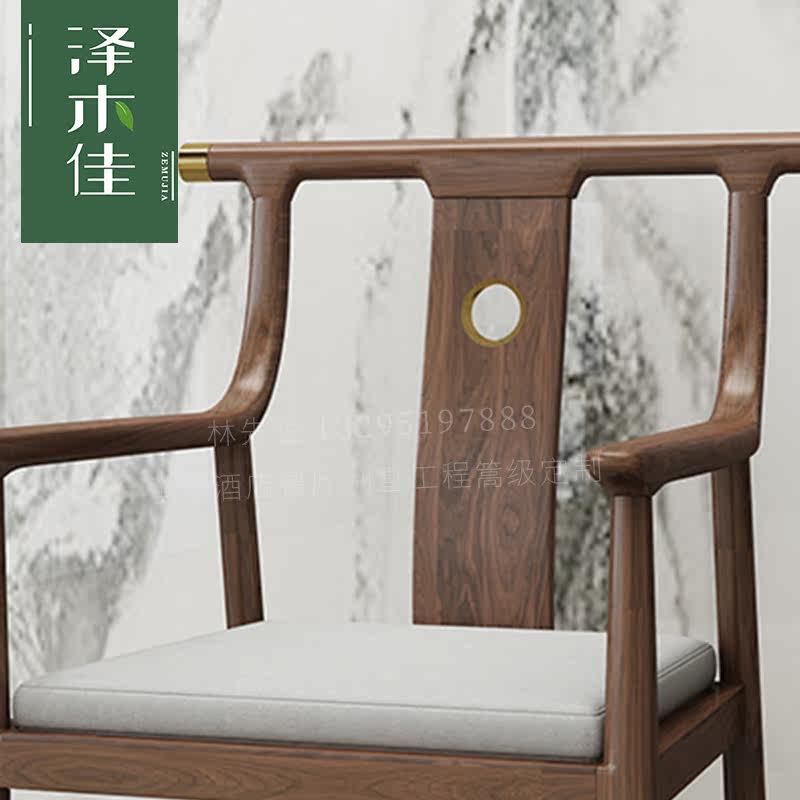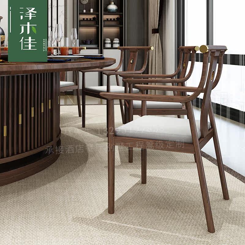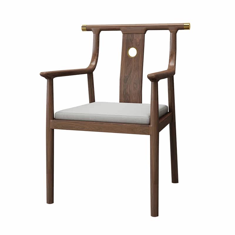 New Chinese-style ash dining room chair household solid wood with armrests copper cover desk chair combination adult self-contained dining chair