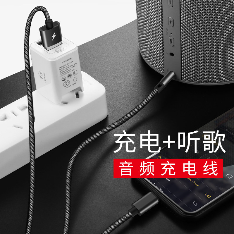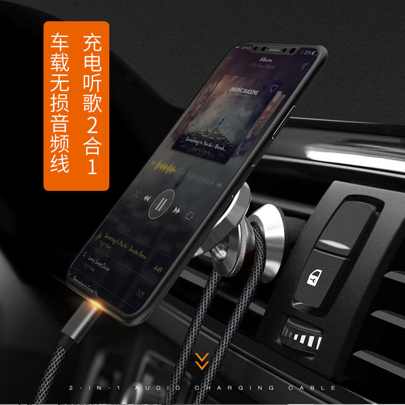 Apple 12pro car aux audio cable two-in-one charging 12promax data cable iphone12 transfer line control volume adjustment 11 mobile phone connection car speaker 3 5