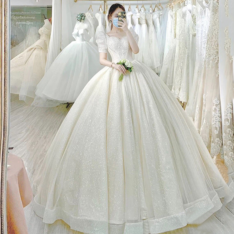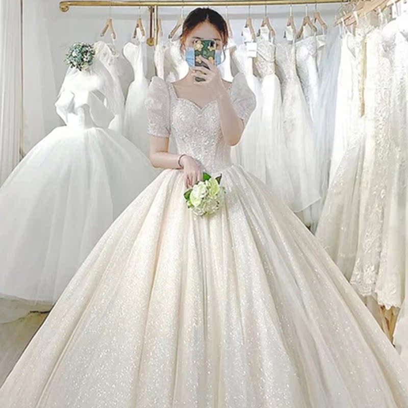 French-style main light wedding dress 2023 new bride simple and small children retro high-end sense trailing princess style retro