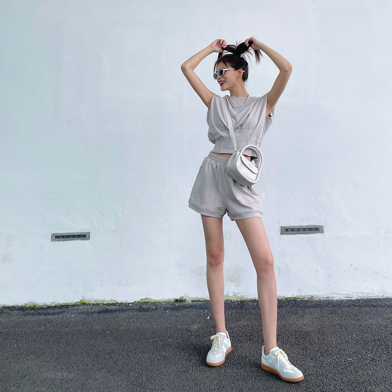 2021 net red foreign style retro Hong Kong style chic fried street age reduction fashion casual sports shorts two-piece suit female summer