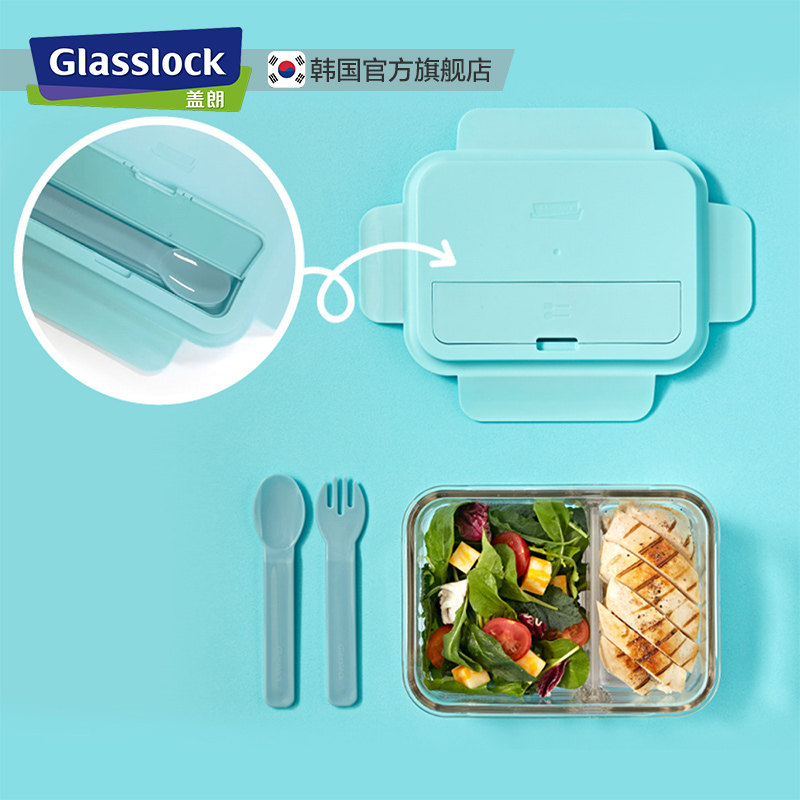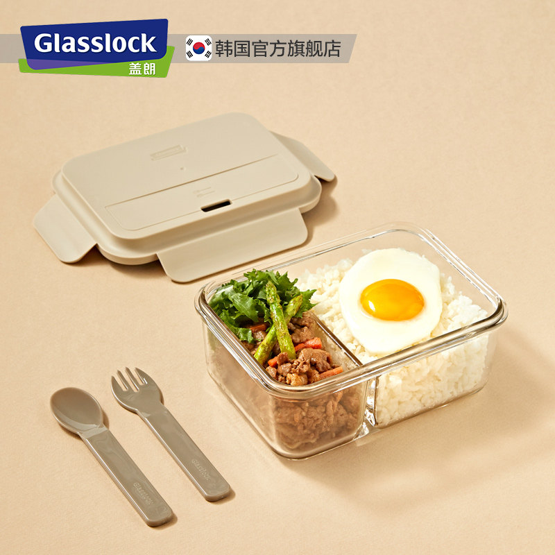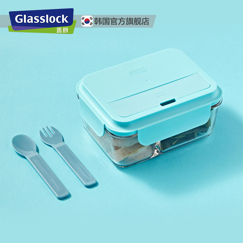 Glaslock Work Group Refreshing Box Glass Lunch Box With Microwave Oven Heating Divider Lunchbox Cutlery