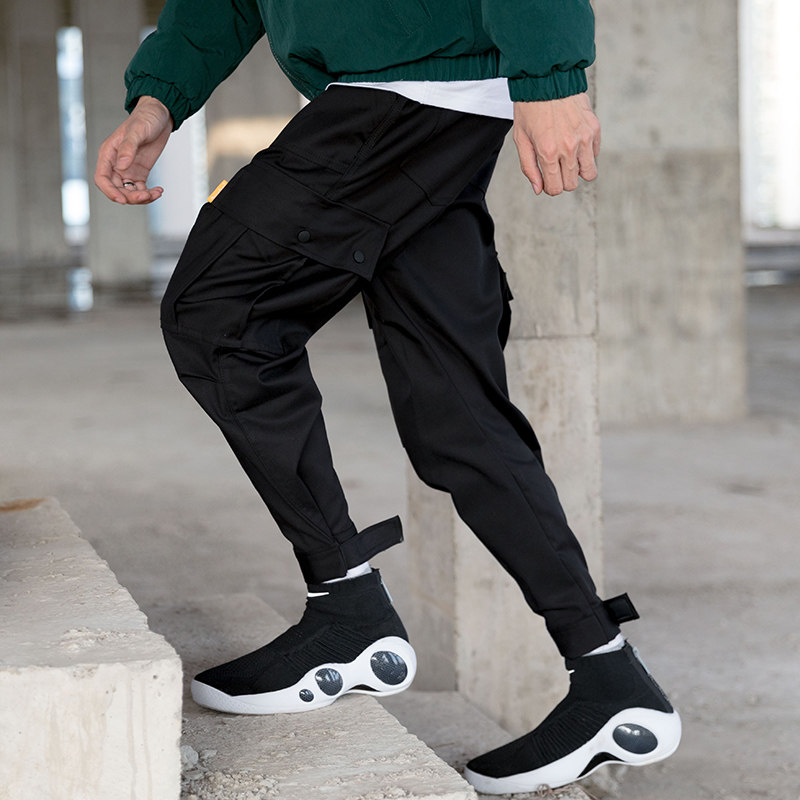 IT in Workplace Pants men tide Yu Wenle elastic relaxed hip - hop small foot casual pants large number Harlen beam foot pants