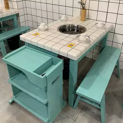 There are Nianotou hot pot tables, solid wood marble skewers, restaurant induction cooker, one-piece market hot pot table and chair combination
