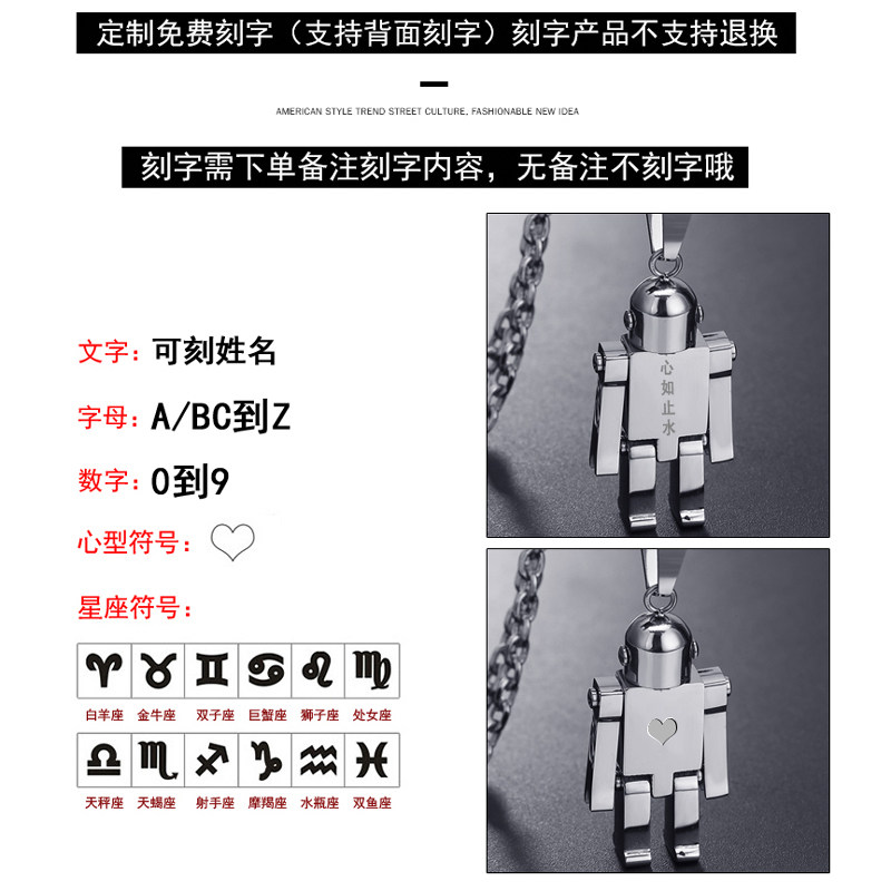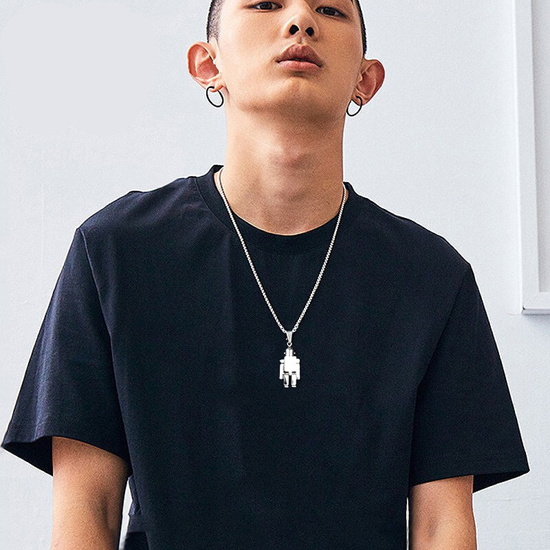 Xiao Zhan Wang Yibo same style robot lettering sterling silver sweater necklace male hip-hop European and American pendant Valentine's Day gift