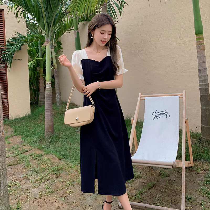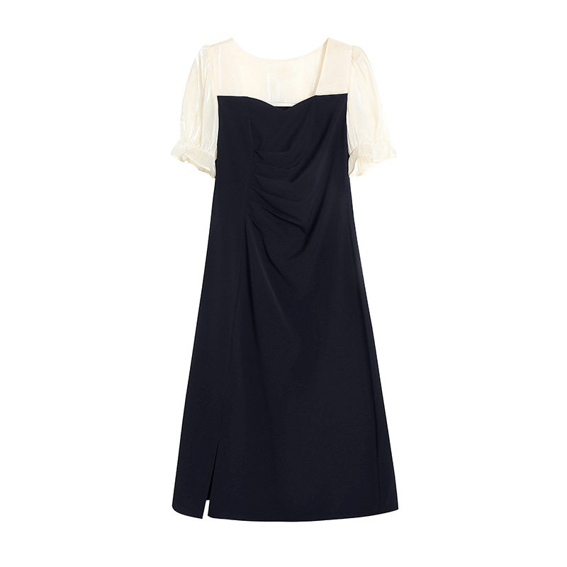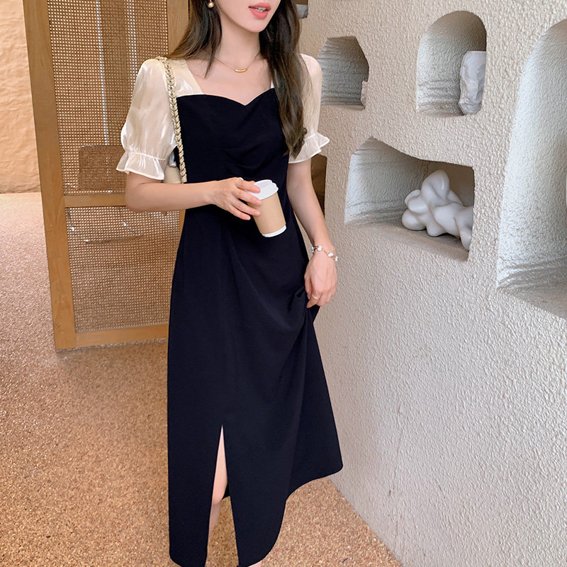 Blue Language Great Size Women's Dress Fat Sister Mm Law Black Tea Hysteria Dresses 2022 Summer New Shades Open Fork Foreign Dress