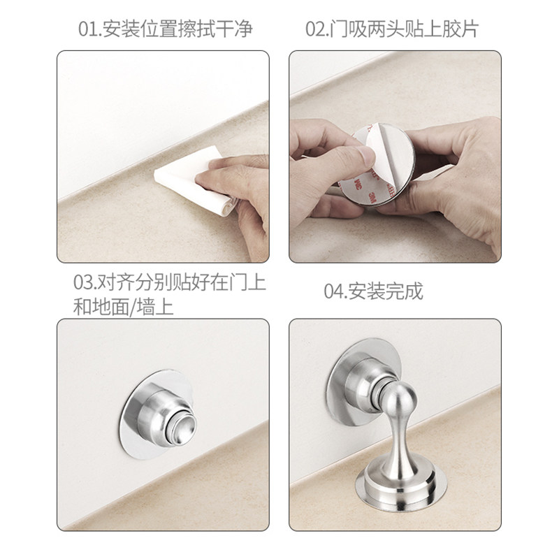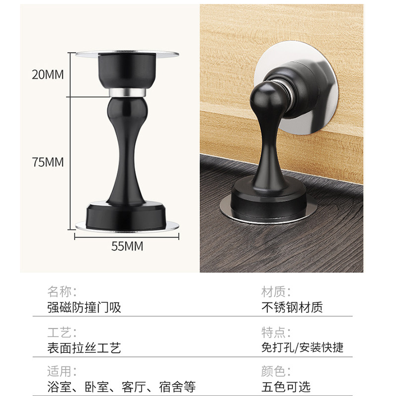 Punch-free door suction 304 stainless steel ground suction door stopper Makeup Room Crash door Touch Strong Magnetic Door Instrumental Door Top Wall Suction