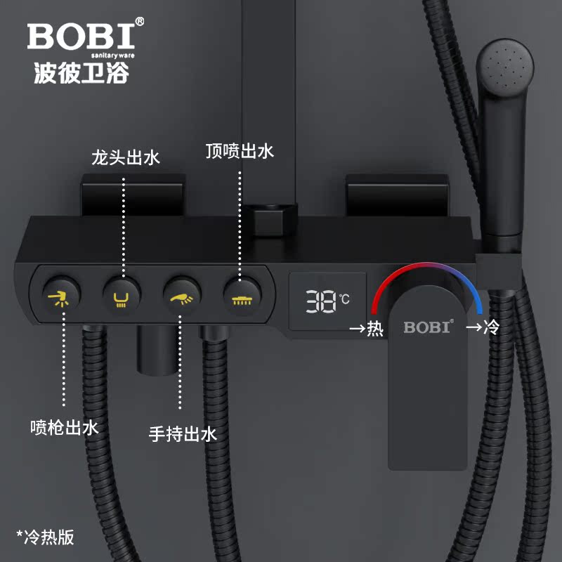 BOBI-912 (Platinum) (square pipe four-gear hot and cold version) BOBI-910 (black) (square pipe four-gear thermostatic number of versions) BOBI-911 (black) (round)