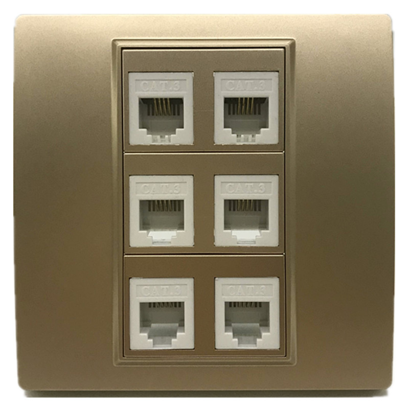Type 86 Champagne Gold six telephone socket panels 6 telephone lines voice RJ11 wall plug cat3 free of beating modules