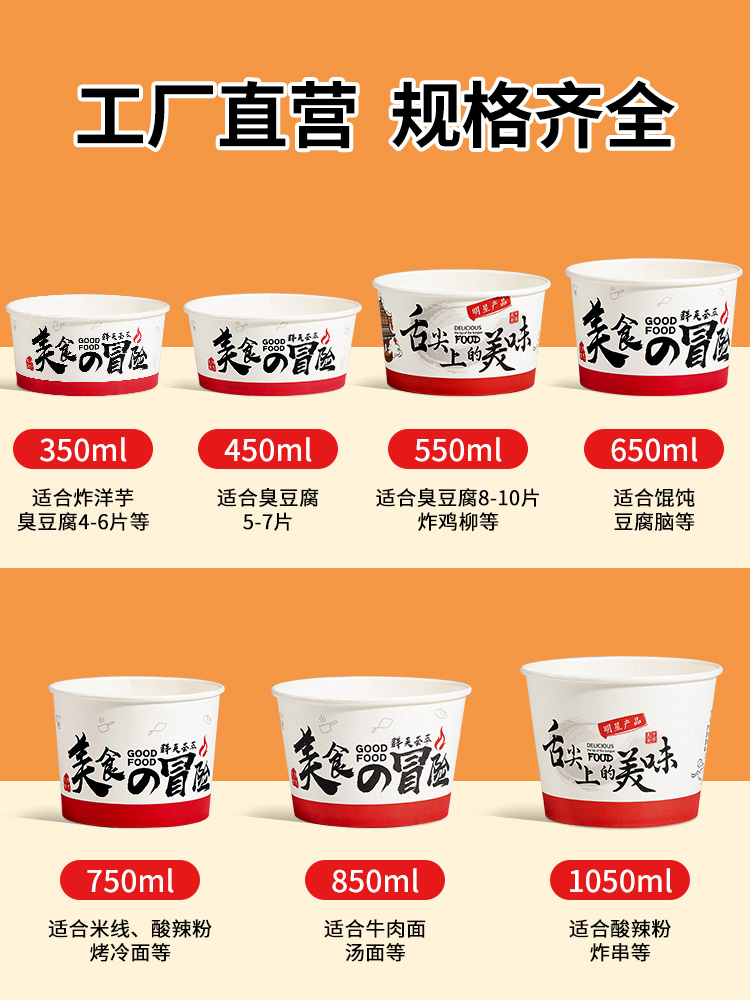 White Environmentally Friendly Disposable Paper Bowl Soup Round Packing Bowl Soup Bowl Takeaway Commercial Round Dining Box Lunch Box Complete Box Customisation