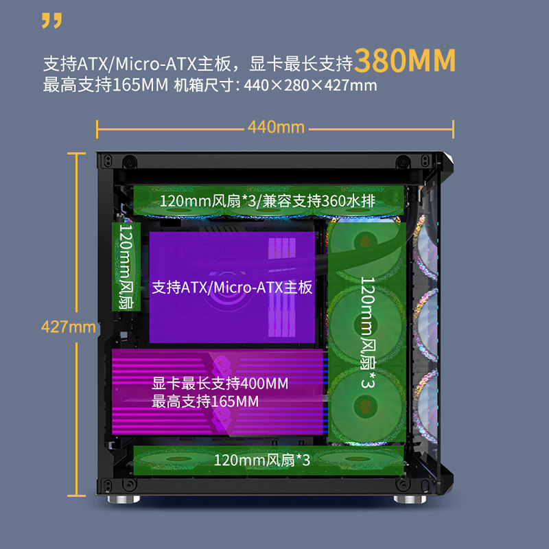 Eitrobin 3 computer case desktop desktop computer 360 water cooling housing matx high face value full side overdraft
