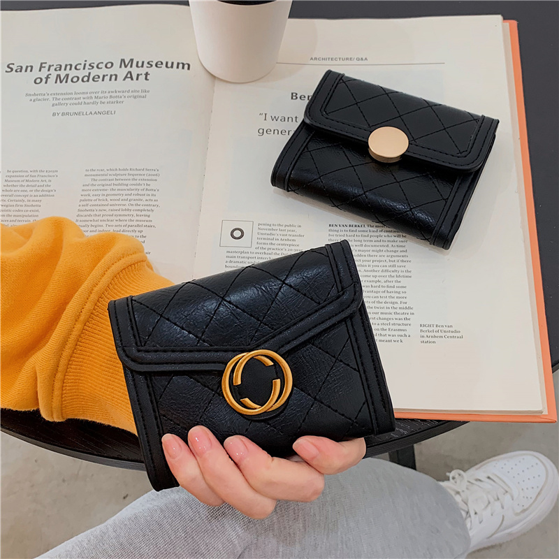 Korean version of the small crowd 100 Lap Retro Rhombus Bag Zero Wallet Woman Short folding multi-position multi-position wind violin style bank cutting sleeve-Taobao