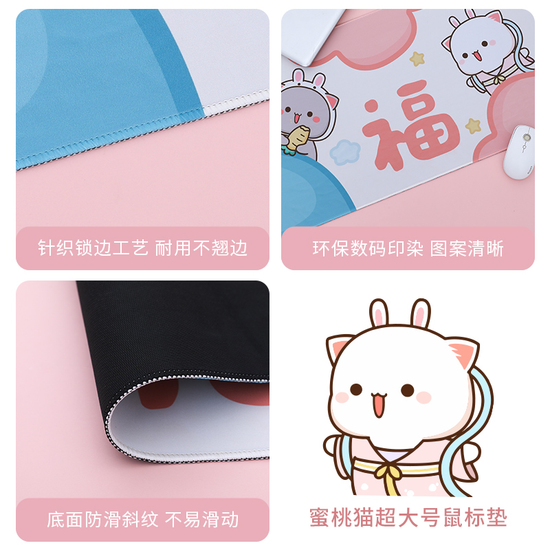 Two-dimensional creator peach cat cartoon ins large mouse pad game electric competition keyboard table mat waterproof mat