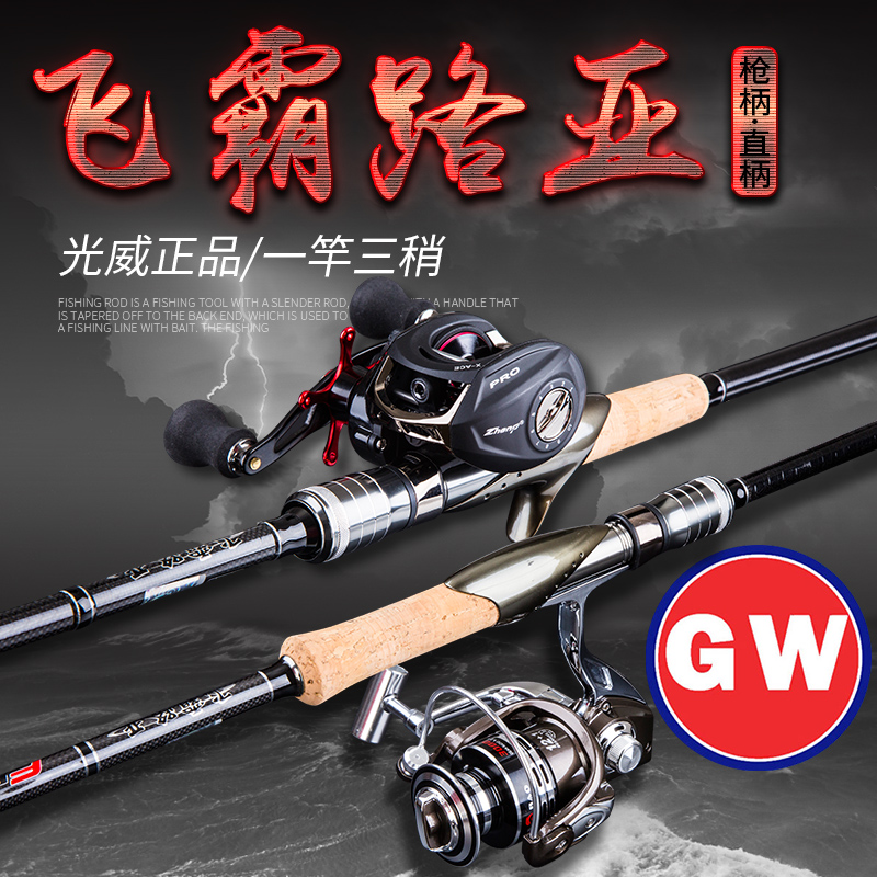 Guangwei Luya rod three slightly MH gun handle water drop wheel Brand name fishing rod long throw L carbon M straight handle spinning wheel set