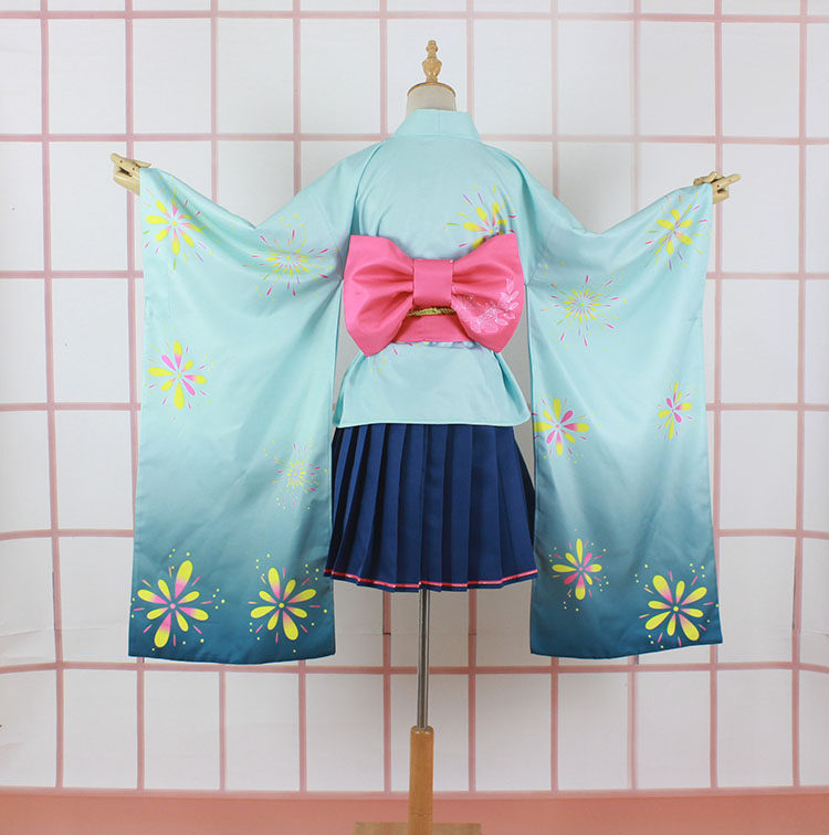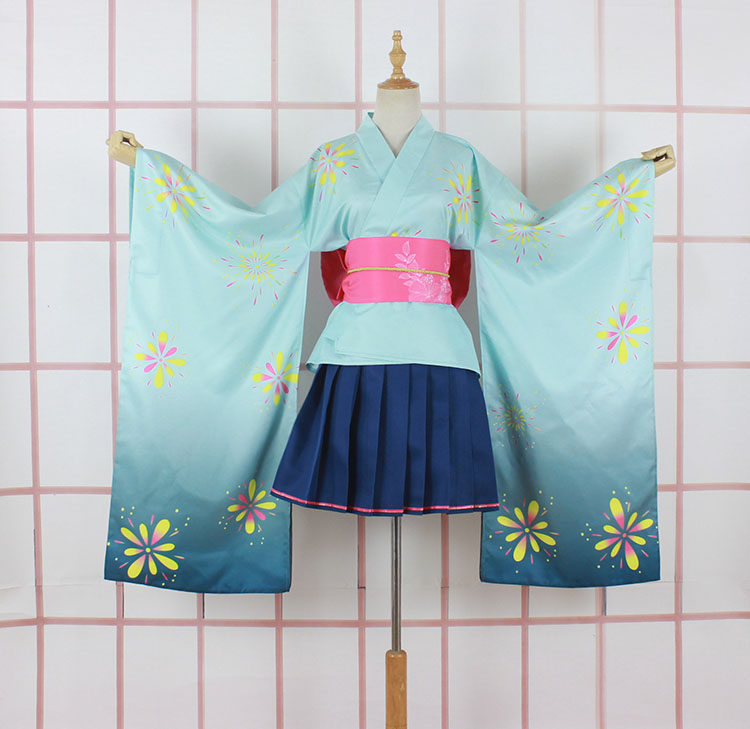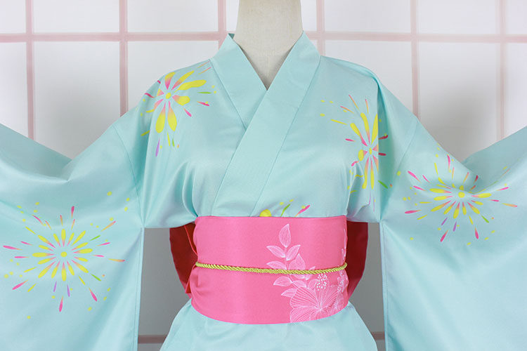 Spa Comics A First Sound Future × Small Raccoons Summer Festival Green Fireworks Cos Kimono and Bathrobe Short Skirt Tail