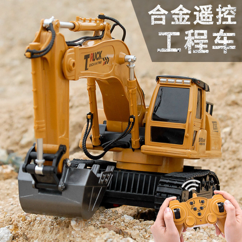 Children's remote control mining crawler charging alloy excavator engineering vehicle according to the drawing quality to operate single-phase asynchronous valley