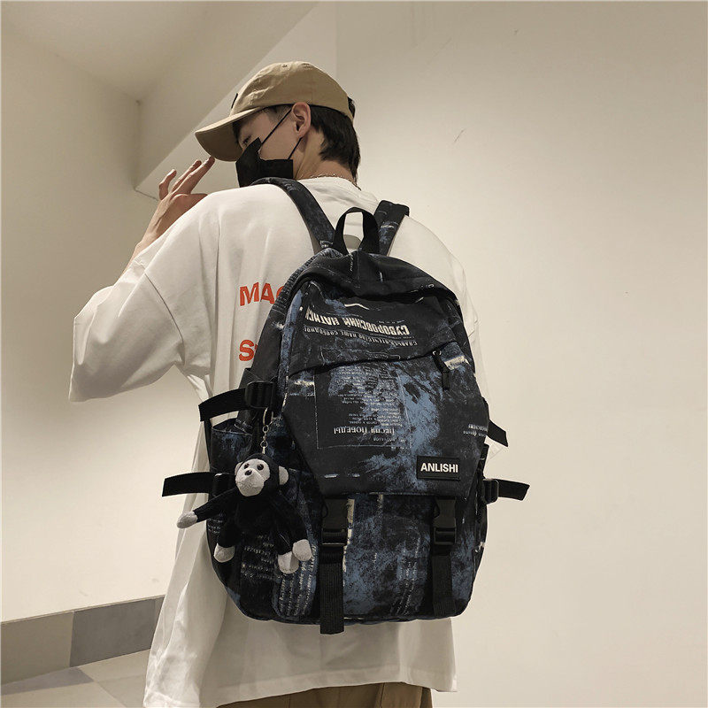 I Tgreg men's double shoulder bag European and American fashion street high school college students in the early middle school students trend ins bag boys