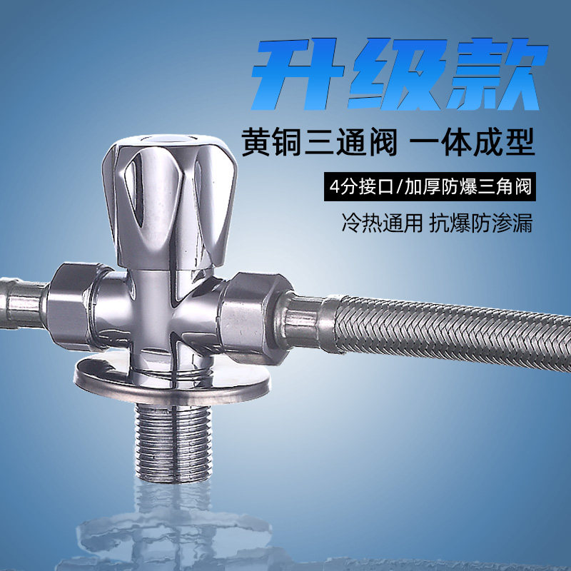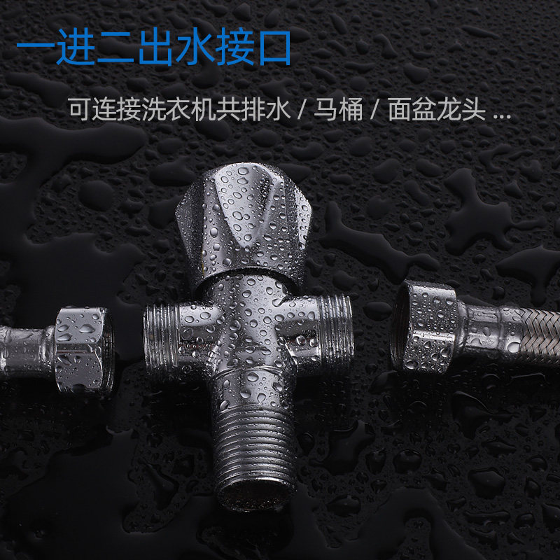One in two all-copper triangle valve one in two out three-way valve with switch washing machine faucet water divider valve