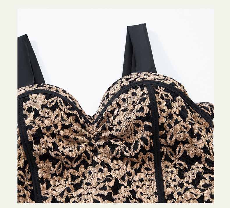 European station new swimsuit small fragrance champagne lace carved with steel ring support chest waist sleeveless dress swimsuit