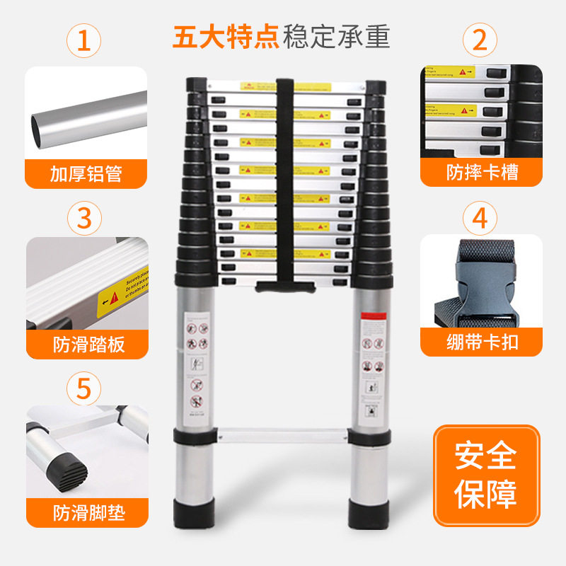Thickened Bamboo Festival Lifting Extension Ladder Shrink Ladder Home Ladder Aluminum Ladder Portable one-word ladder loft with straight ladder engineering single ladder-Taobao