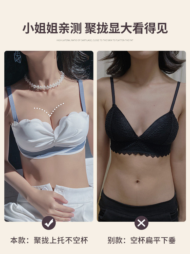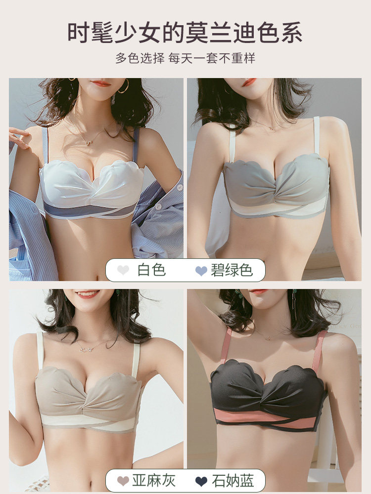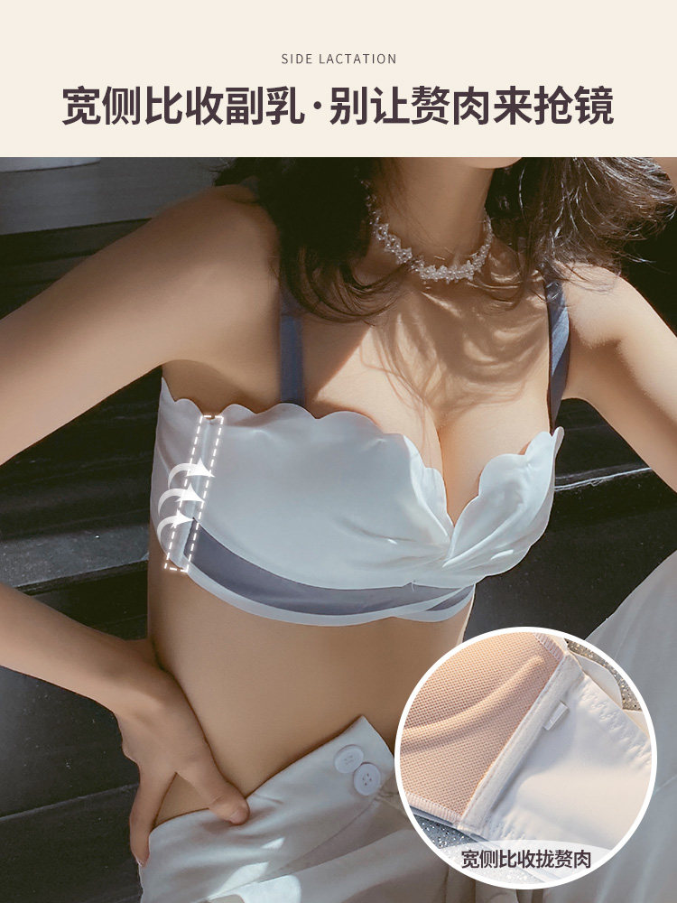 Dianfen lingerie female without marks small breasts for large gathering without steel ring thin collection of auxiliary milk without shoulder strap bra hood suit