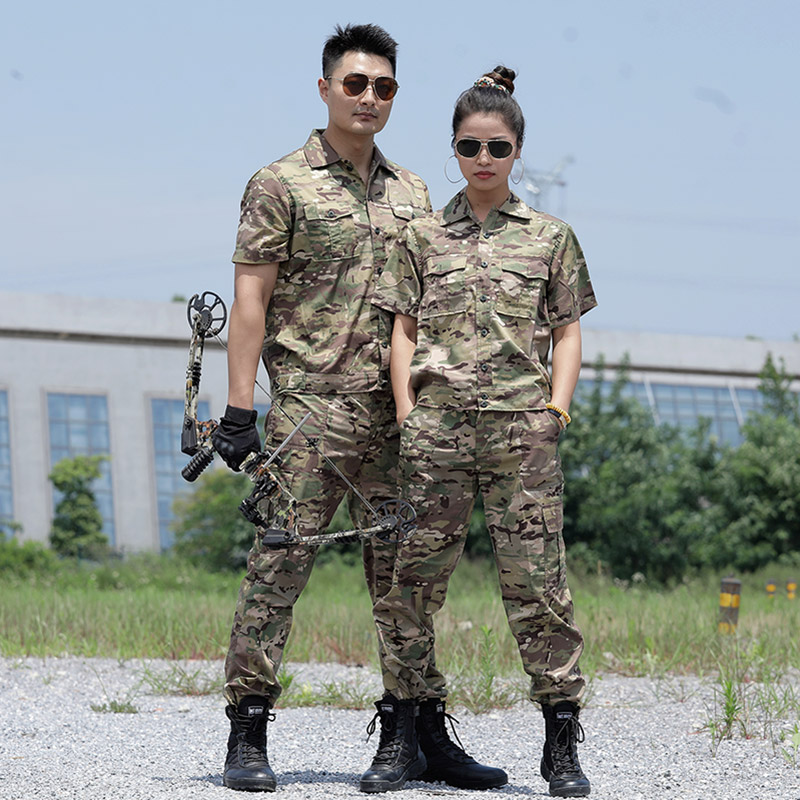 New summer short-sleeved thin camouflage suit male student military training special training breathable military fan dirty-resistant overalls female