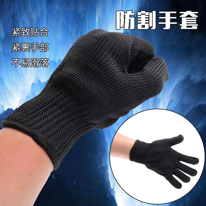 Stainless steel security tactical steel wire cut-resistant gloves labor insurance black five-finger gloves wear-resistant protective anti-blade gloves