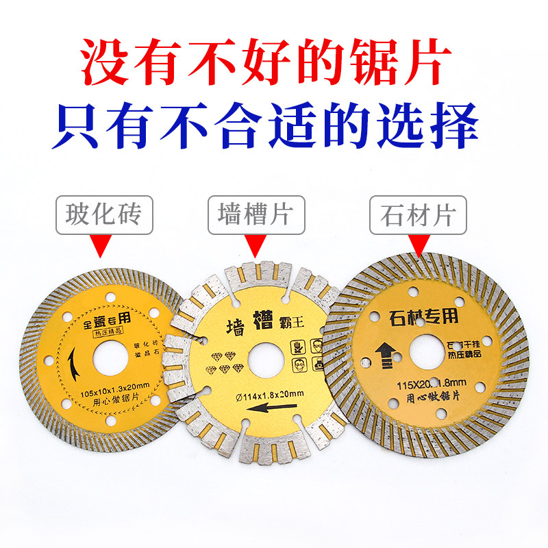 Diameter 105 Aperture 20 (tile) Diameter 114 Aperture 20 (all porcelain) Diameter 114 Aperture 20 (new product recommendation) Diameter 114 Aperture 20 (dry cutting and slotting) Diameter 11