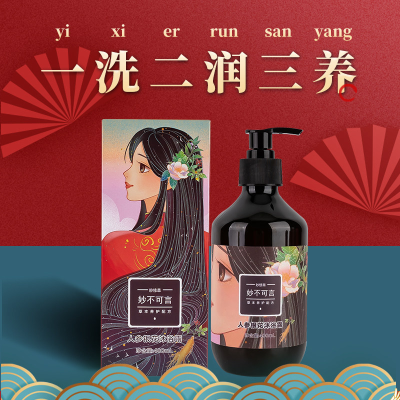 Pure Chinese herbal shower gel Miaoxiu grass ginseng silver flower shower gel moisturizing moisturizing antibacterial antipruritic unisex