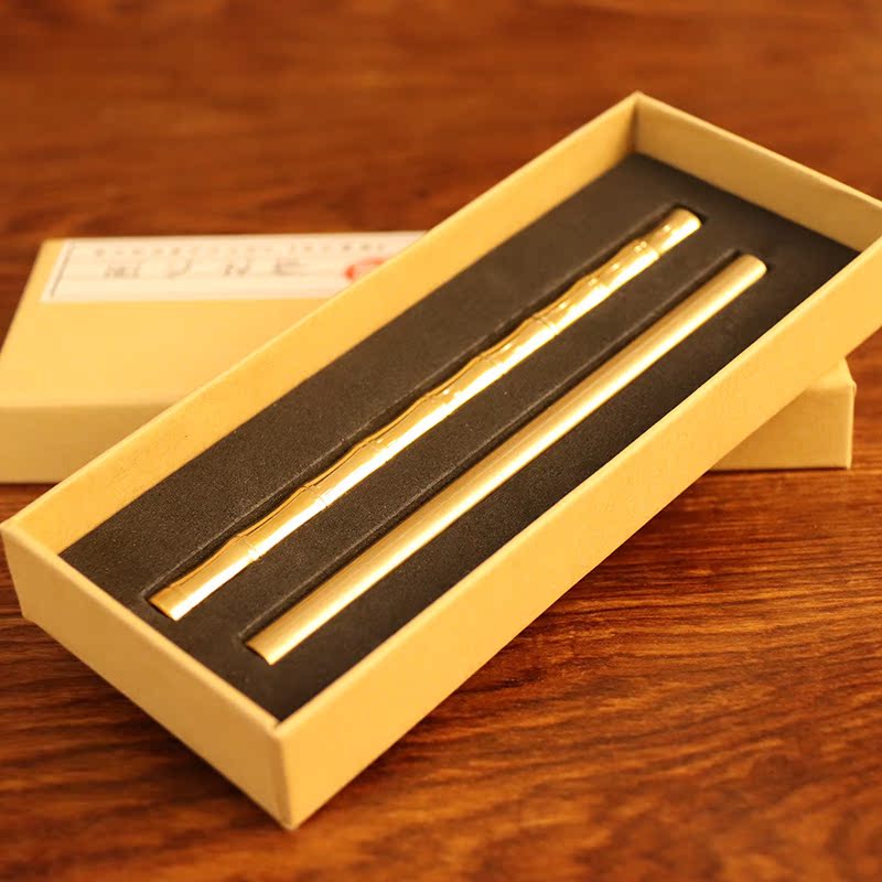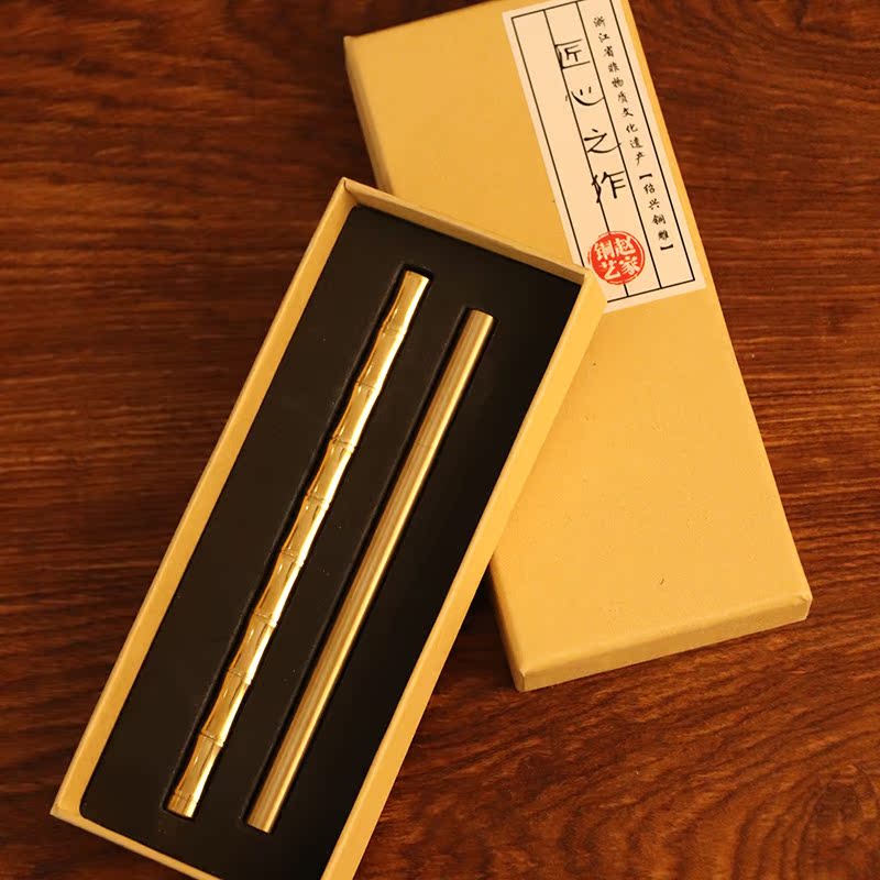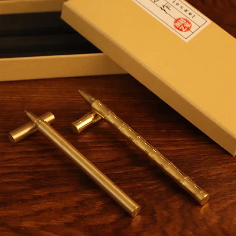 Artisan's work Zhejiang Intangible cultural heritage Shaoxing steel engraving steps High-lift pen brass Signature pen Two clothes