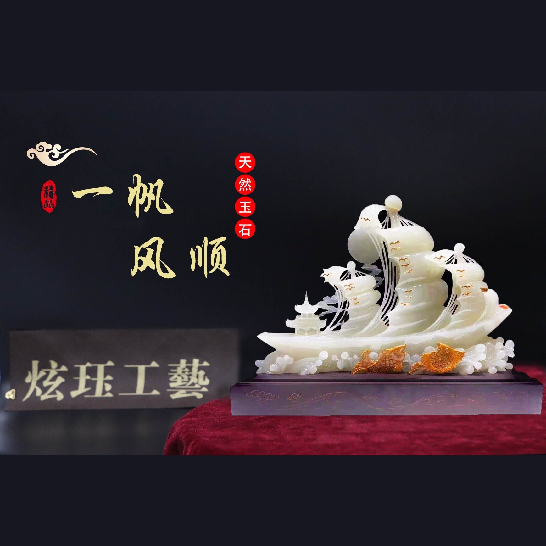 Jade boat ornaments smooth sailing porch TV cabinet home decoration office feng shui Zhaocai opening gift