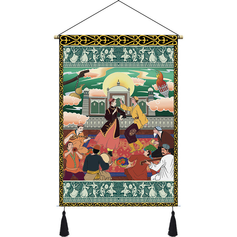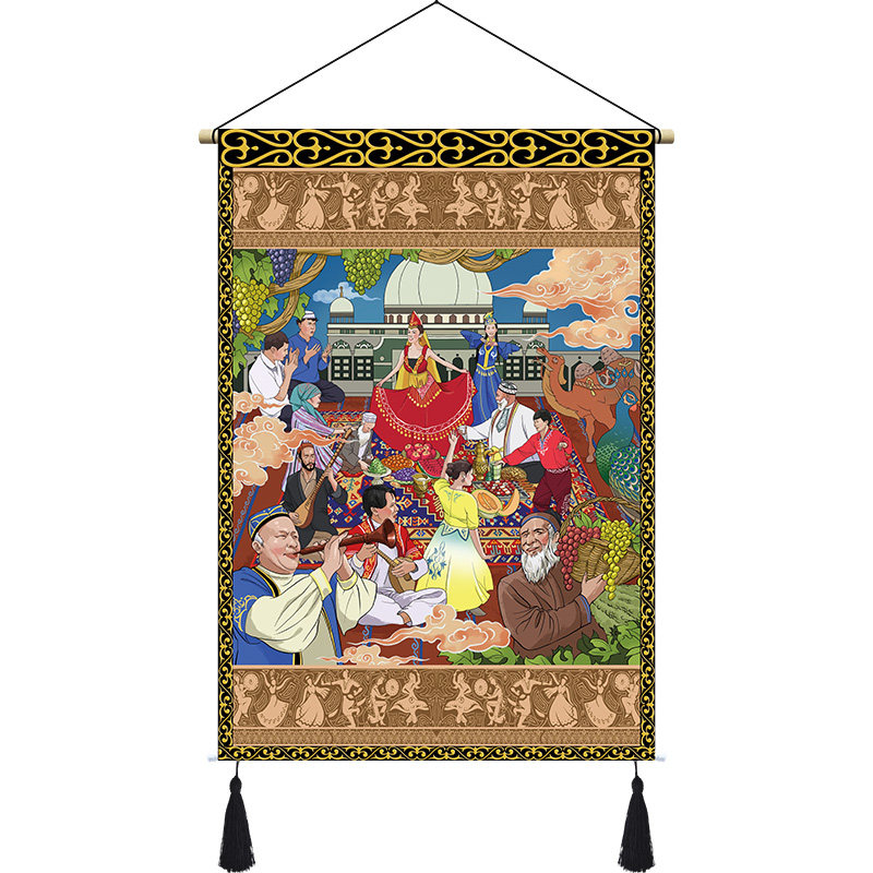 Xinjiang ethnic festival elements cloth art hanging paintings hanging cloth themed dining room Dining Room Decoration Cloth Painting Hotel Folk Juku Tapestries