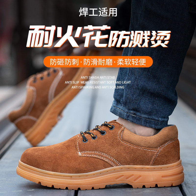 Summer labor insurance shoes men's steel toe cap breathable anti-smashing anti-stab anti-skid wear-resistant leather welding site protective work shoes