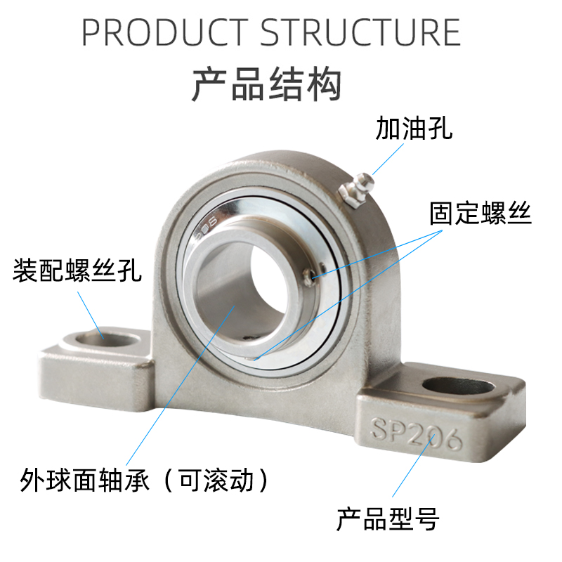 The outer spherical stainless steel belt stand vertical bearing seat SUCP204 SUCP205 SUCP206 SUCP207